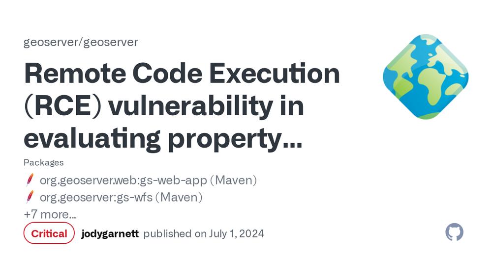 GeoServer 보안 패치 안내(CVE-2024-36401)오픈 소스 GIS/GeoServer 2024. 7. 25. 09:21