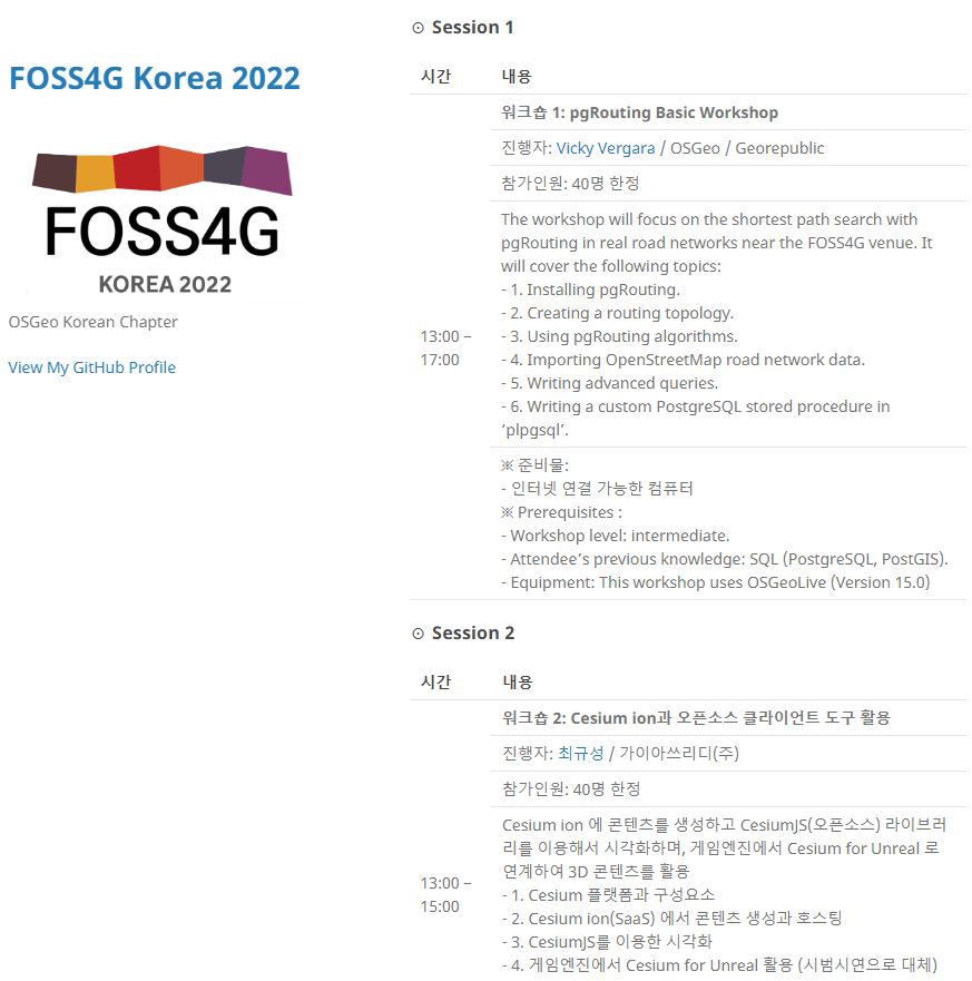 * 상세 워크숍 정보: https://foss4g.osgeo.kr/workshop